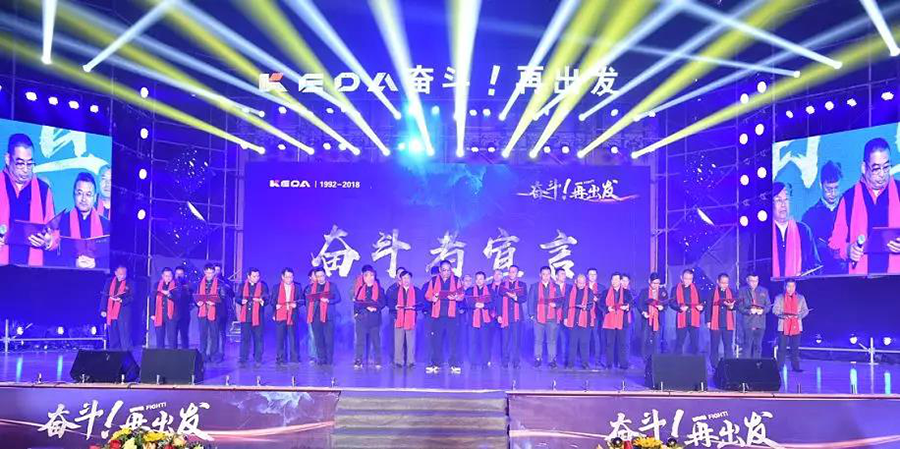 1992年,一群奮斗者創(chuàng)辦科達,歷經(jīng)26年的風(fēng)雨洗禮,在“求真務(wù)實、踏實苦干”、“財散人聚、財聚人散”的精神號召下,凝聚了一大批志同道合的有志之士,助推企業(yè)一步一個腳印發(fā)展至今,26年后的今天,科達憑借著一代代奮斗者們銳意創(chuàng)新、拼搏進取的精神,從一個名不見經(jīng)傳的五金小作坊成長為建材機械行業(yè)龍頭企業(yè),從中國走向世界!為了更好地支持“全球化”戰(zhàn)略大布局,再攀高峰,公司需要更多科達人投身到奮斗的洪流中,加入奮斗者行列,傳承科達的奮斗精神,以奮斗點燃事業(yè),揚帆再出發(fā)!為隆重其事,在兩臺晚會現(xiàn)場特別設(shè)置了“奮斗者宣言”誓師儀式,公司所有高管及各事業(yè)部、子公司、支持服務(wù)平臺等中高層骨干代表團隊及全體員工方陣分別進行“奮斗者宣言”誓師。