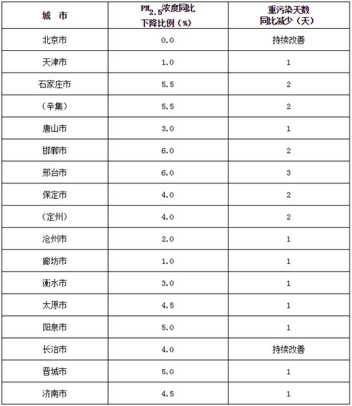 主要目標(biāo):穩(wěn)中求進(jìn),推進(jìn)環(huán)境空氣質(zhì)量持續(xù)改善,京津冀及周邊地區(qū)全面完成2019年環(huán)境空氣質(zhì)量改善目標(biāo),協(xié)同控制溫室氣體排放,秋冬季期間(2019年10月1日至2020年3月31日)PM2.5平均濃度同比下降4%,重度及以上污染天數(shù)同比減少6%(詳見(jiàn)附件1)。