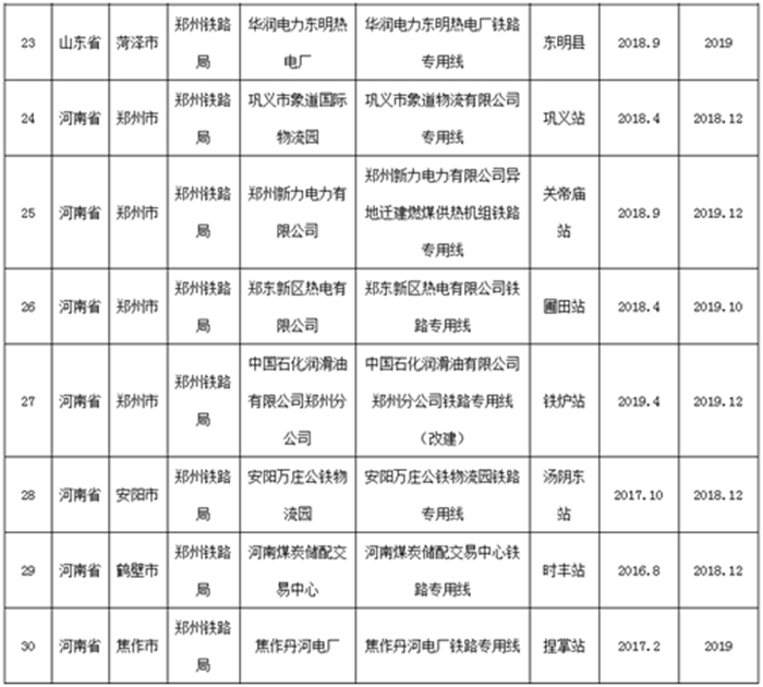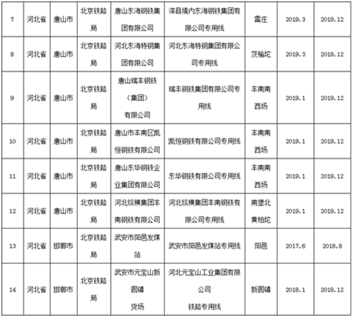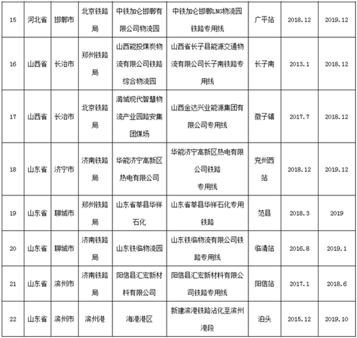 12.加快推進(jìn)鐵路專(zhuān)用線(xiàn)建設(shè)。各地要逐一核實(shí)《交通運(yùn)輸部等九部門(mén)貫徹落實(shí)國(guó)務(wù)院辦公廳〈推進(jìn)運(yùn)輸結(jié)構(gòu)調(diào)整三年行動(dòng)計(jì)劃(2018-2020)〉的通知》中鐵路專(zhuān)用線(xiàn)重點(diǎn)建設(shè)項(xiàng)目(見(jiàn)附件2)落實(shí)情況,按照《關(guān)于加快推進(jìn)鐵路專(zhuān)用線(xiàn)建設(shè)的指導(dǎo)意見(jiàn)》要求,積極推進(jìn)鐵路專(zhuān)用線(xiàn)建設(shè);2019年10月底前,各地要對(duì)大宗貨物年貨運(yùn)量150萬(wàn)噸及以上的大型工礦企業(yè)和新建物流園區(qū)鐵路專(zhuān)用線(xiàn)建設(shè)情況、企業(yè)環(huán)評(píng)批復(fù)要求建設(shè)鐵路專(zhuān)用線(xiàn)落實(shí)情況等進(jìn)行摸排。對(duì)工程進(jìn)度滯后的,要分析查找原因,分類(lèi)提出整改方案,確保2020年基本完成。若涉及規(guī)劃調(diào)整、項(xiàng)目變更、企業(yè)搬遷退出等因素不再建設(shè)的,地方可提出變更申請(qǐng),由主管部門(mén)確認(rèn)。