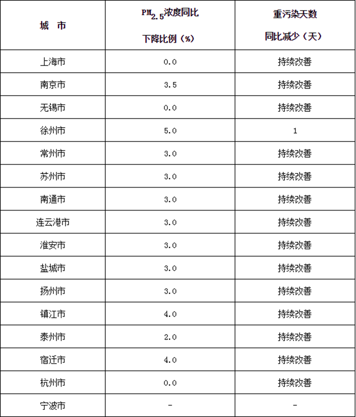 主要目標(biāo):穩(wěn)中求進(jìn),推進(jìn)環(huán)境空氣質(zhì)量持續(xù)改善,長(zhǎng)三角地區(qū)全面完成2019年環(huán)境空氣質(zhì)量改善目標(biāo),協(xié)同控制溫室氣體排放。秋冬季期間(2019年10月1日-2020年3月31日),PM2.5平均濃度同比下降2%,重度及以上污染天數(shù)同比減少2%(詳見附件1)。