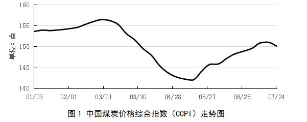 截止2020年7月24日,中國煤炭價格綜合指數(shù)(CCPI)報收于150.1點,較年初下跌2.3%,較去年同期下跌5.4%。
