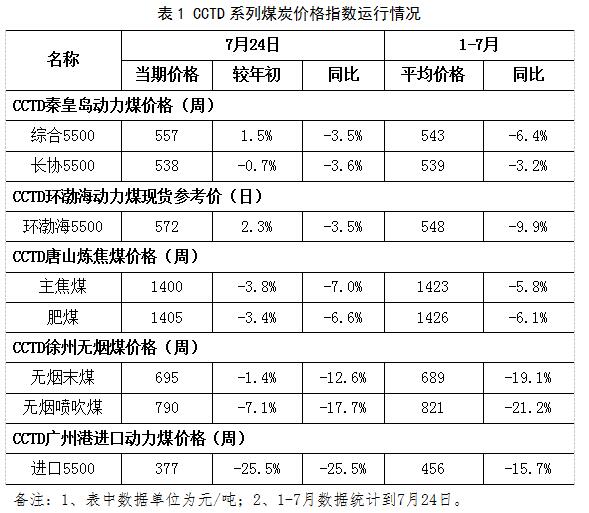 2020年1-7月份煤炭價格指數(shù)運行情況及后期展望
