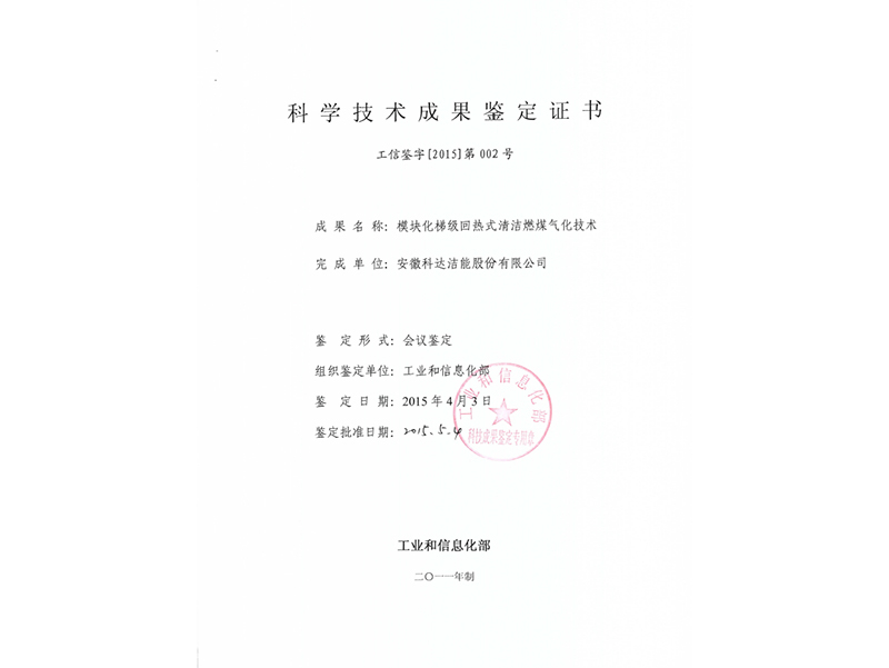 模塊化梯級回?zé)崆鍧嵢济簹饣到y(tǒng)鑒定證書