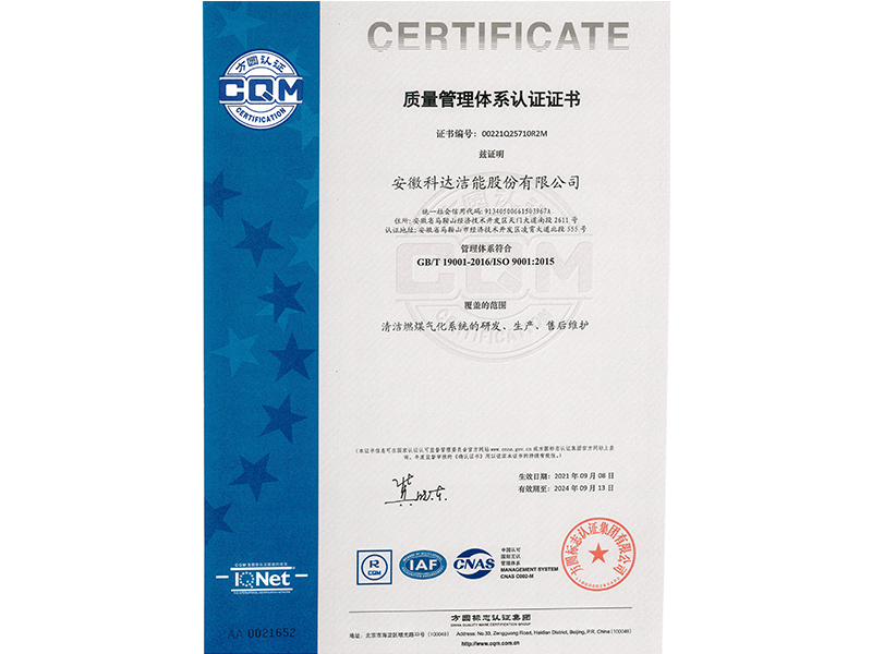 質(zhì)量管理體系證書