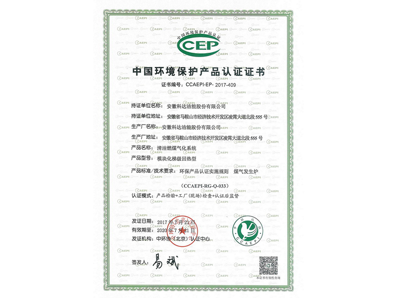 模塊化梯級(jí)回?zé)崾江h(huán)保產(chǎn)品認(rèn)證證書
