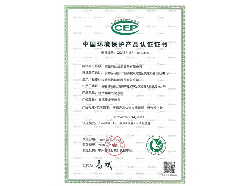 旋流撞擊式干粉系統(tǒng)環(huán)保產(chǎn)品認(rèn)證證書