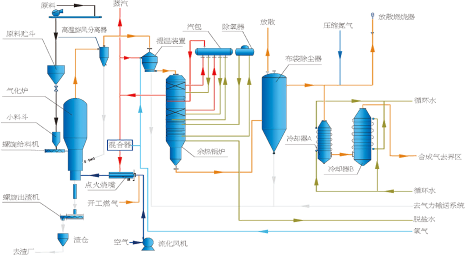 ? 進料位于氣化爐底部濃相區(qū),可使物料充分混合和反應(yīng)。